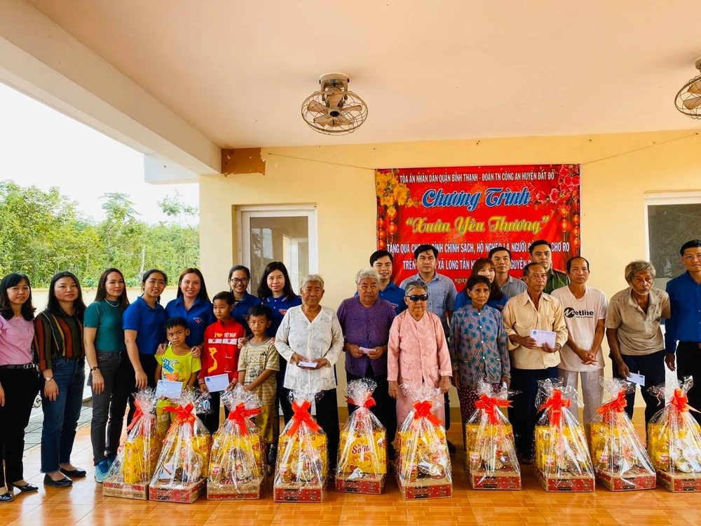 Đoàn TAND quận Bình Thạnh, TP.HCM trao quà cho các hộ gia đình đồng bào Chơ Ro. Ảnh: TA