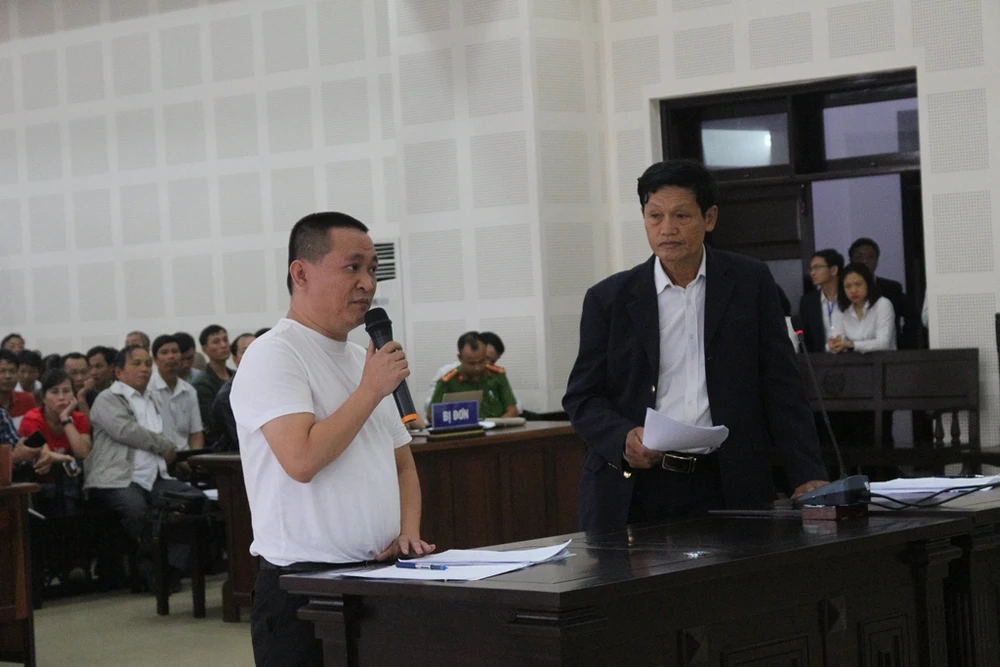 Đại diện Công ty Bách Đạt An (áo trắng) trả lời câu hỏi của người có quyền lợi và nghĩa vụ liên quan trong vụ án. Ảnh: TA