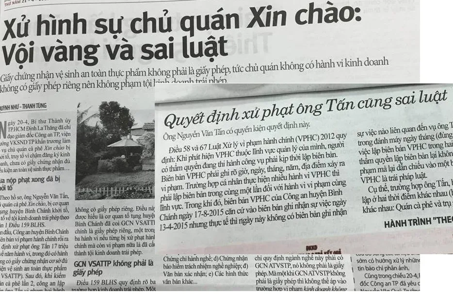 Như Pháp Luật TP.HCM đã thông tin ngày 13-8-2015, Công an huyện Bình Chánh phối hợp các ngành chức năng kiểm tra quán cà phê “Xin Chào” ở C12/26 khu phố 3, thị trấn Tân Túc, huyện Bình Chánh do ông Nguyễn Văn Tấn làm chủ.