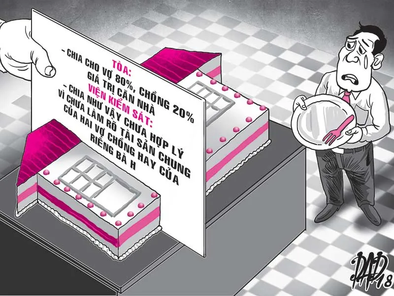 Theo VKS, trong khi chưa rõ đây là tài sản chung của vợ chồng hay là tài sản riêng của bà H. mà cấp sơ thẩm lại chia cho bà H. hưởng 80%, ông C. hưởng 20% là chưa đảm bảo quyền lợi cho các bên. Chưa kể tòa không tuyên số tiền cụ thể mỗi bên hưởng là bao nhiêu. Ngoài ra, bản án giao nhà cho bà H. mà không nói rõ giao cho bà H. quản lý, sử dụng hay được quyền sở hữu, điều này sẽ gây khó khăn cho việc thi hành án.