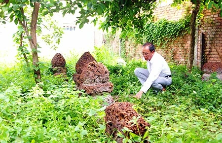 Ông Mừng với những ngôi mộ đá ong của gia tộc đã có từ hàng trăm năm nay. Ảnh: Đ.TRÍ