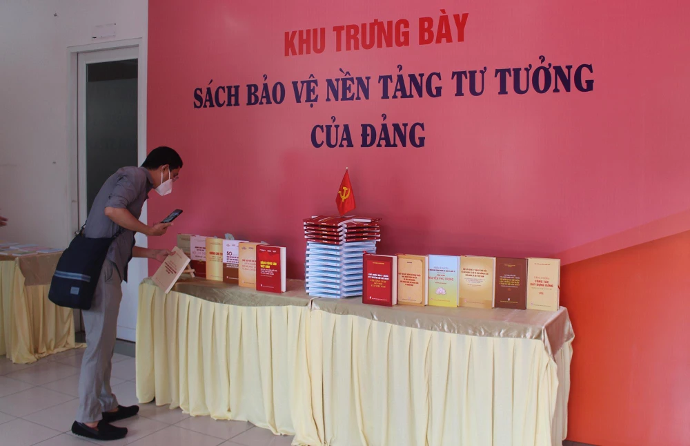 Các sách về bảo vệ nền tảng tư tưởng Đảng trưng bày tại hội nghị. Ảnh: NGUYỄN YÊN |