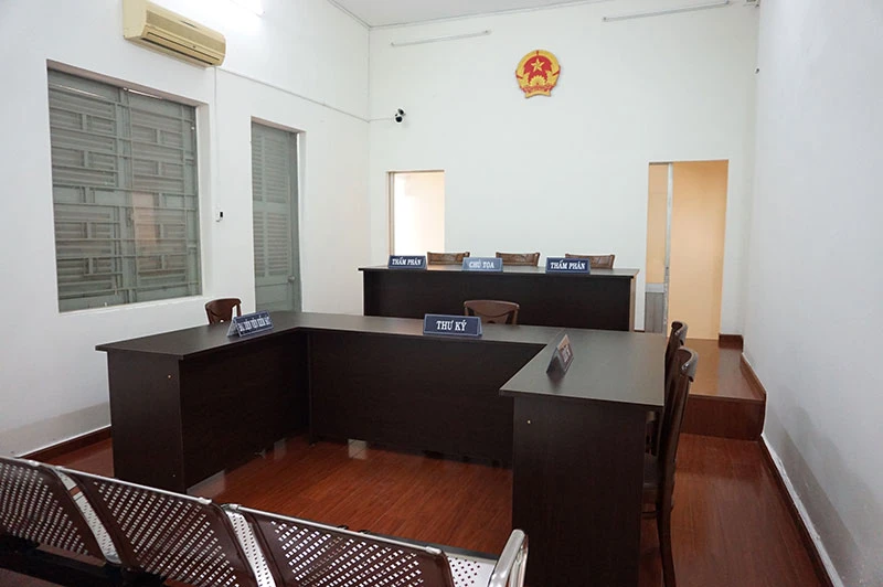 Phòng xử án hình sự đối với các bị cáo chưa đủ 18 tuổi không có vành móng ngựa. Đại diện VKS ngồi ngang hàng với bàn của luật sư. Phòng xử còn có camera, máy lạnh.