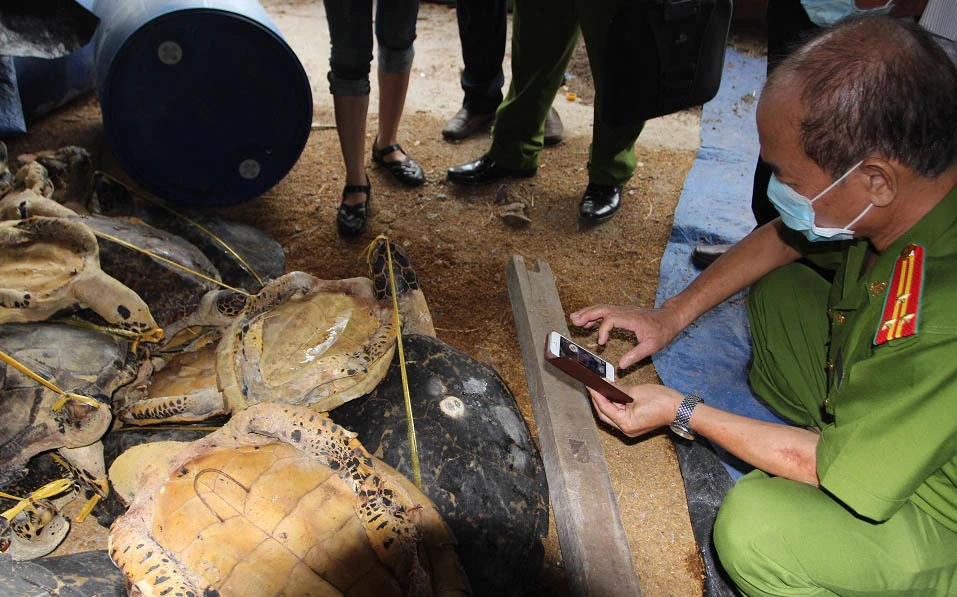 Tiếp đó, từ ngày 19 đến 22-12-2014, Phòng CSĐT tội phạm về môi trường Công an tỉnh Khánh Hòa kiểm tra, xác minh tin báo, phát hiện Hải cất giấu rất nhiều xác cá thể rùa biển tại khu vực chăn nuôi của gia đình bà Vũ Thị Hải Thanh (ở xã Phước Đồng, TP Nha Trang).