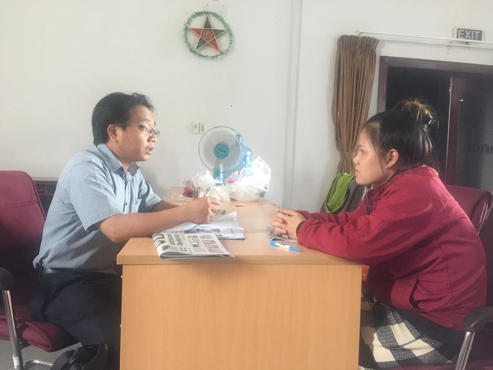 Luật sư Lê Văn Bình đang tư vấn cho Mỹ Linh về quyền được xin lỗi và bồi thường khi bị oan.