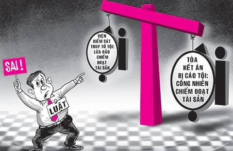 Cụ thể, theo Điều 196 BLTTHS, tòa chỉ xét xử những bị cáo và những hành vi theo tội danh mà VKS truy tố và tòa đã quyết định đưa ra xét xử. Tòa có thể xét xử bị cáo theo khoản khác với khoản mà VKS đã truy tố trong cùng một điều luật hoặc về một tội khác bằng hoặc nhẹ hơn tội mà VKS đã truy tố. Trong khi đó, tội công nhiên chiếm đoạt tài sản là tội nặng hơn tội lừa đảo chiếm đoạt tài sản (mức án cao nhất của cả hai tội đều là tù chung thân nhưng mức án thấp nhất của tội lừa đảo chiếm đoạt tài sản là ba năm cải tạo không giam giữ, còn mức án thấp nhất của tội công nhiên chiếm đoạt tài sản là sáu tháng tù). Do vậy, việc HĐXX kết án bị cáo về tội công nhiên chiếm đoạt tài sản là vi phạm giới hạn xét xử.