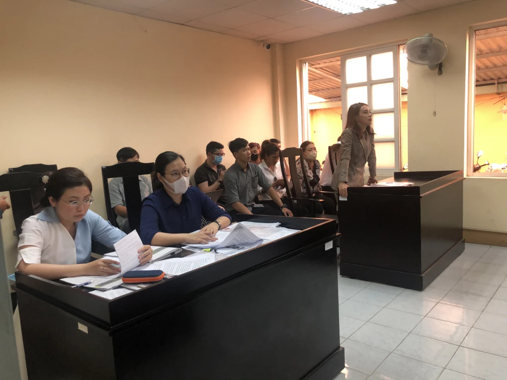 Miko Lan Trinh (đứng) trình bày tại tòa. Ảnh: HOÀNG YẾN