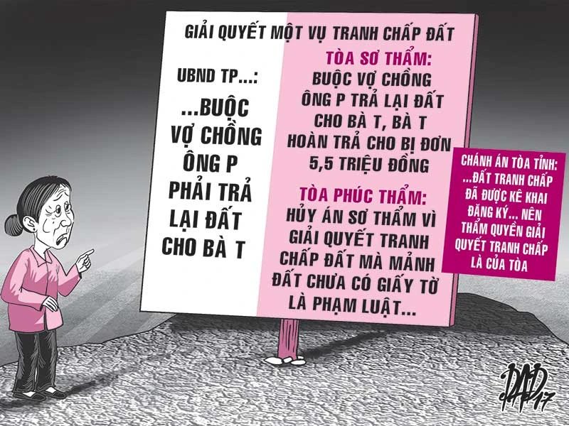 TAND Cấp cao tại Đà Nẵng vừa có quyết định giám đốc thẩm hủy toàn bộ bản án phúc thẩm vụ tranh chấp đất giữa bà T. và bà C., giao hồ sơ cho TAND tỉnh Khánh Hòa xử phúc thẩm lại. Vụ tranh chấp này đã kéo dài bảy năm, xuất phát từ việc hai cơ quan là tòa án và UBND cùng giải quyết khiến có sự mâu thuẫn, chồng chéo về thẩm quyền.