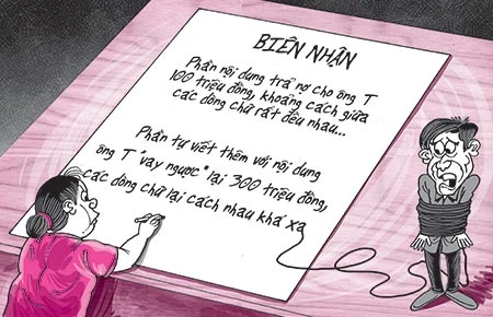 Lên tòa, bà V. còn kể lể: “Để có tiền cho ông ấy vay, tôi phải cùng em gái ra ngân hàng rút tiền rồi mang đến tận nhà. Không những thế, trên đường đi, sợ mất tiền, hai chị em tôi cứ phải lo thấp thỏm. Bây giờ, đã có biên nhận để chứng minh mà ông T. cứ chối phăng, bảo không vay”. Bà V. lý giải không yêu cầu ông T. viết biên nhận riêng cho khoản ông T. vay 300 triệu đồng vì nghĩ đơn giản cũng cùng một người ký. Lúc hai bên thỏa thuận, ông T. đang bế con nên bà đã ghi luôn số tiền ông vay vào cùng tờ biên nhận mà bà trả tiền vay để khỏi mất công.