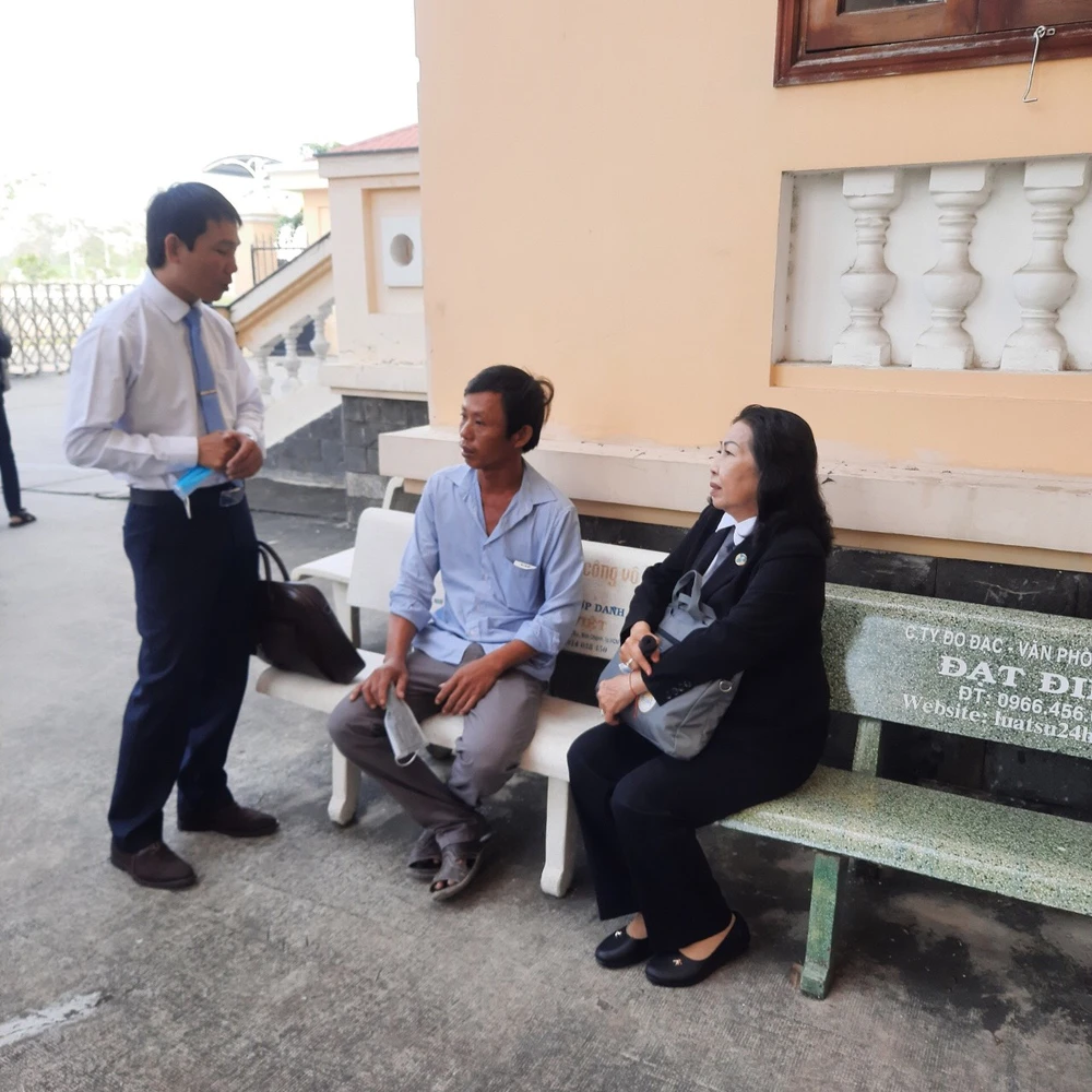Cha của bị hại và hai luật sư bảo vệ miễn phí cho con gái. Ảnh: PL