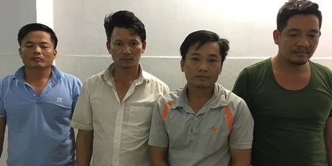 Các bị cáo tại trụ sở Công an quận Thủ Đức. Ảnh: baoconganTP.HCM