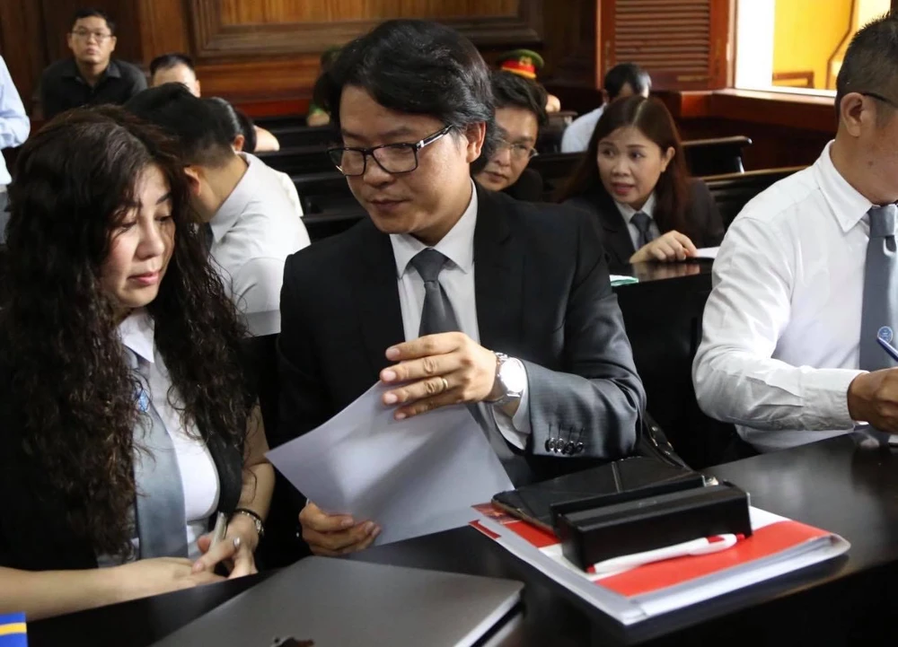 Hai luật sư bào chữa cho bị cáo Nguyễn Hữu Tín. Ảnh: TRƯỜNG GIANG