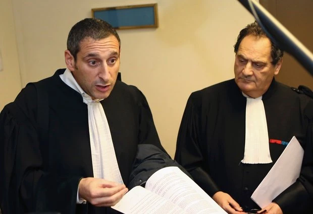 Luật sư Emmanuel Soussen (trái) trong phiên xử taxi Uber tại Paris