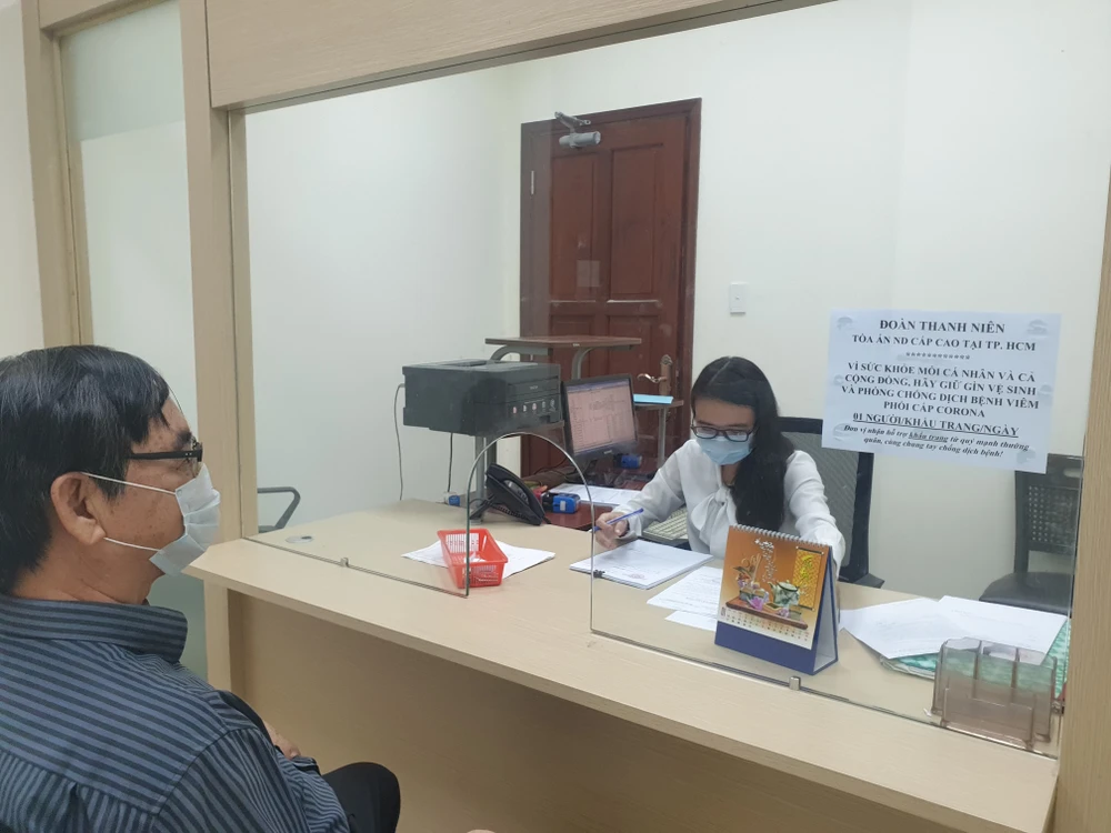 Người dân và cán bộ tòa đều mang khẩu trang khi làm việc. Ảnh: HY