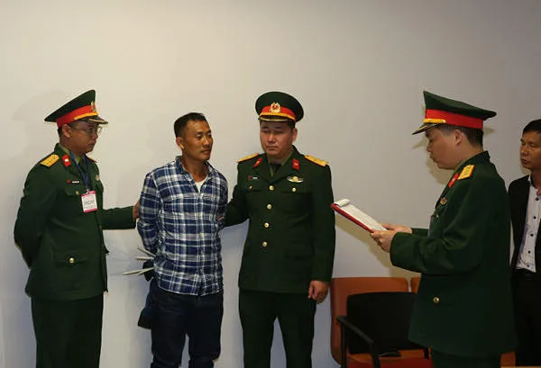 Bị cáo Lê Quang Hiếu Hùng bị bắt sau một thời gian trốn truy nã. Ảnh: Bộ Quốc phòng
