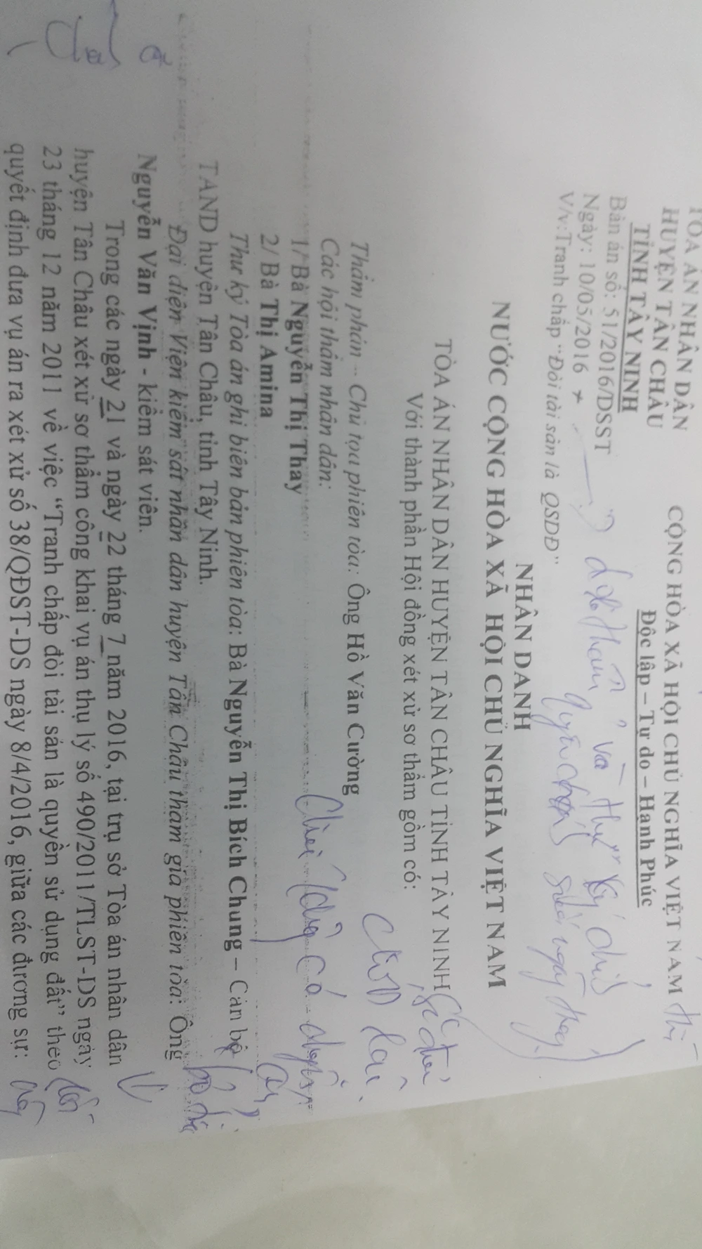 Bản án số 51/2016/DSST ban hành ngày 10-5-2016 nhưng thực tế đến ngày 21 và 22-7-2016 mới đưa ra xét xử. Ảnh QM