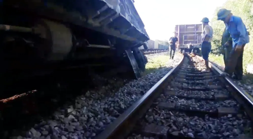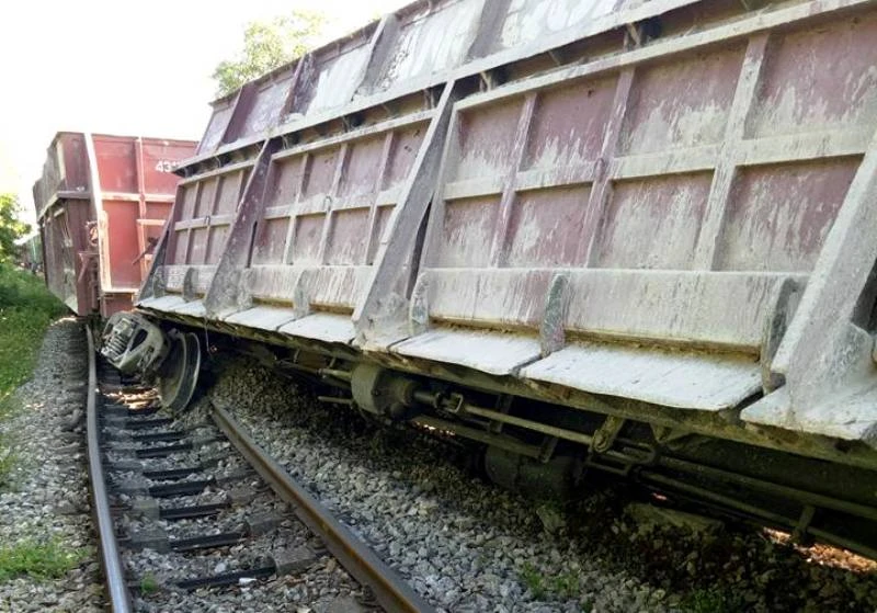 Khoảng 16 giờ 30 ngày 26-5, có hai toa tàu chở đá bị trật bánh xe khỏi đường ray khiến hai toa bị đổ nghiêng, đường sắt Bắc-Nam đang bị ách tắc.