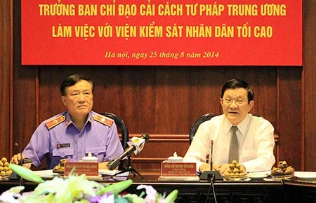 Ở cương vị trưởng Ban Chỉ đạo Cải cách tư pháp (CCTP) Trung ương, Chủ tịch nước Trương Tấn Sang đã dành trọn ngày 25-8 để làm việc với tập thể lãnh đạo TAND Tối cao và VKSND Tối cao về thực hiện kết luận của Bộ Chính trị liên quan đến chiến lược CCTP.