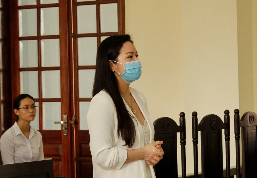 Nguyên đơn - ca sĩ Nhật Kim Anh tại phiên tòa phúc thẩm hồi tháng 8-2020. Ảnh: NHẪN NAM