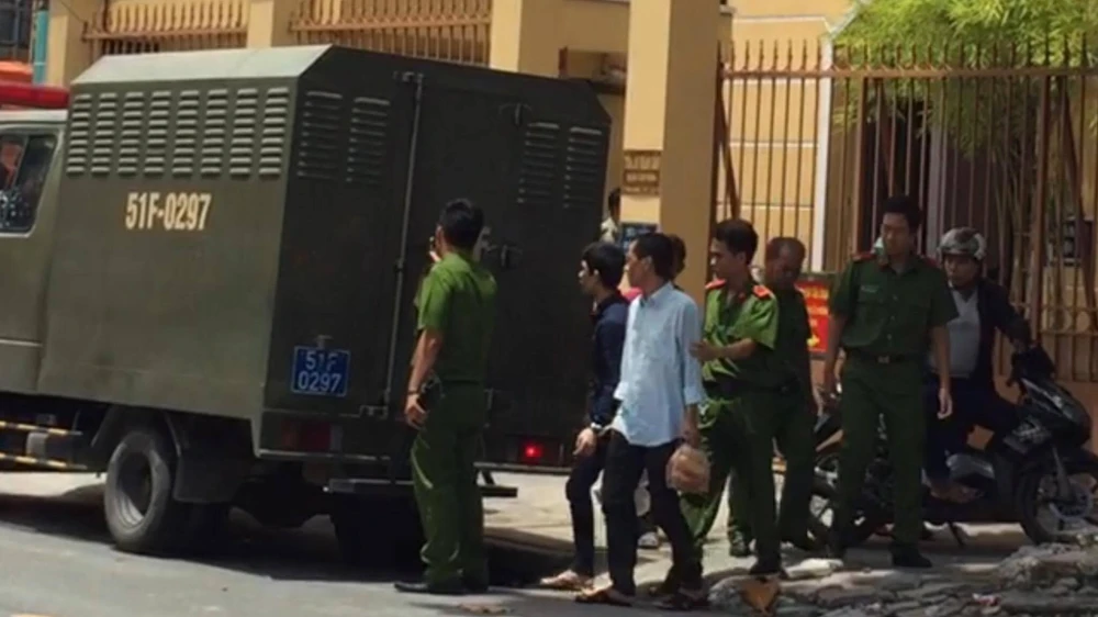 Hai bị cáo ra xe về trại tạm giam sau khi HĐXX quyết định trả hồ sơ điều tra bổ sung nhằm tránh lọt người, lọt tội.