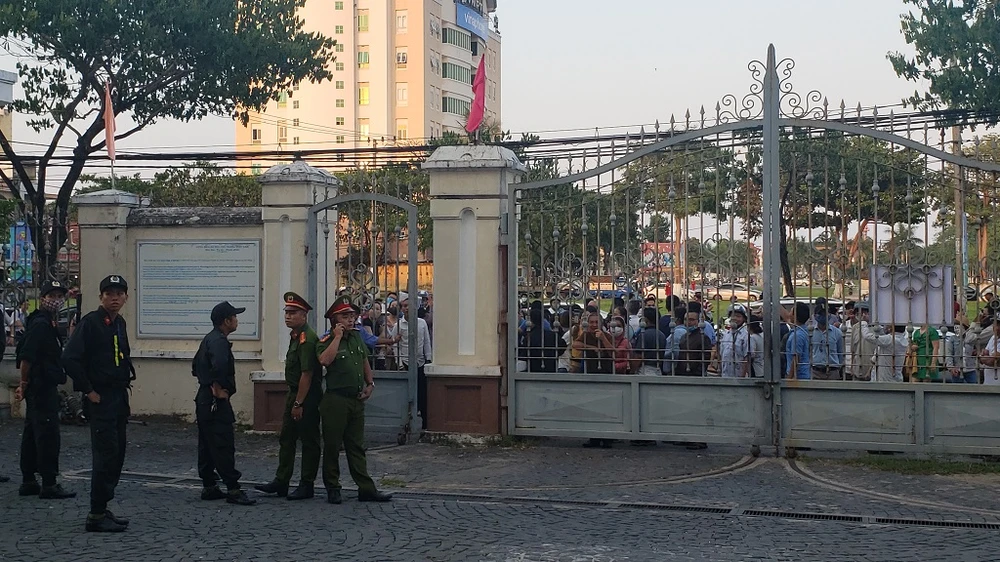 Nhiều người dân đứng chờ ngoài cổng tòa đã vỗ tay reo mừng khi biết được kết quả phiên xử. Ảnh: T.AN