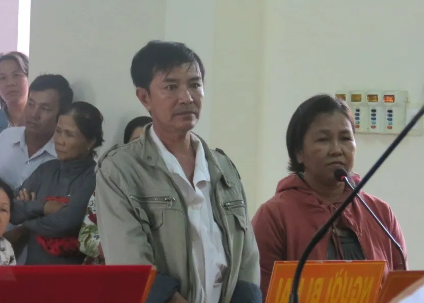 Vợ chồng ông Hùng và bà Nga tại phiên tòa. Ảnh: Trùng Khánh