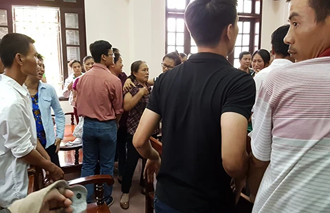 Sau khi tòa tuyên án, người thân các bị cáo phản ứng khiến phòng xử án náo loạn. Ảnh: HẢI ĐƯỜNG