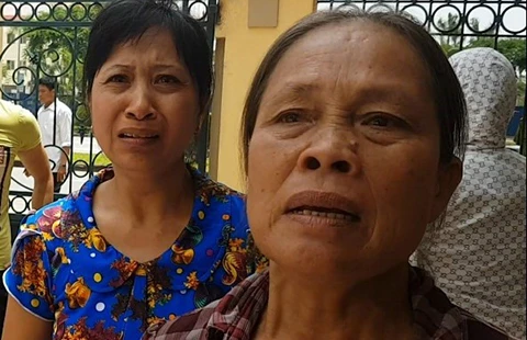 Mẹ bị cáo Phạm Đăng Hậu (phải) và mẹ bị cáo Lương Xuân Chung sau phiên xử. Ảnh: HẢI ĐƯỜNG