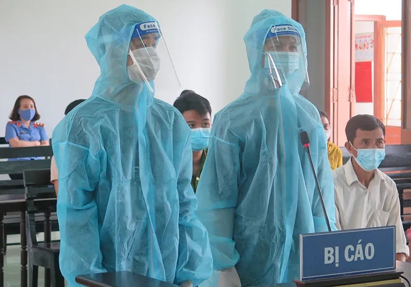 Hai bị cáo Nguyễn Lâm và Đặng Phúc Công tại tòa. Ảnh: VŨ XUÂN