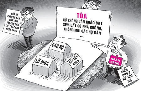 Chưa kể, các bản án sơ, phúc thẩm chỉ đề cập đến việc xử lý tài sản thế chấp là đất trống mà không hề đề cập đến các căn nhà đã xây dựng trên đất. Nếu cơ quan thi hành án tổ chức thi hành là không ổn bởi theo Luật Thi hành án dân sự, cơ quan thi hành án chỉ được làm đúng những gì mà bản án tuyên. Do vậy, các thiếu sót của hai cấp tòa sơ, phúc thẩm cần phải được khắc phục bằng thủ tục giám đốc thẩm theo hướng hủy hai bản án sơ, phúc thẩm để giải quyết lại vụ án từ đầu.