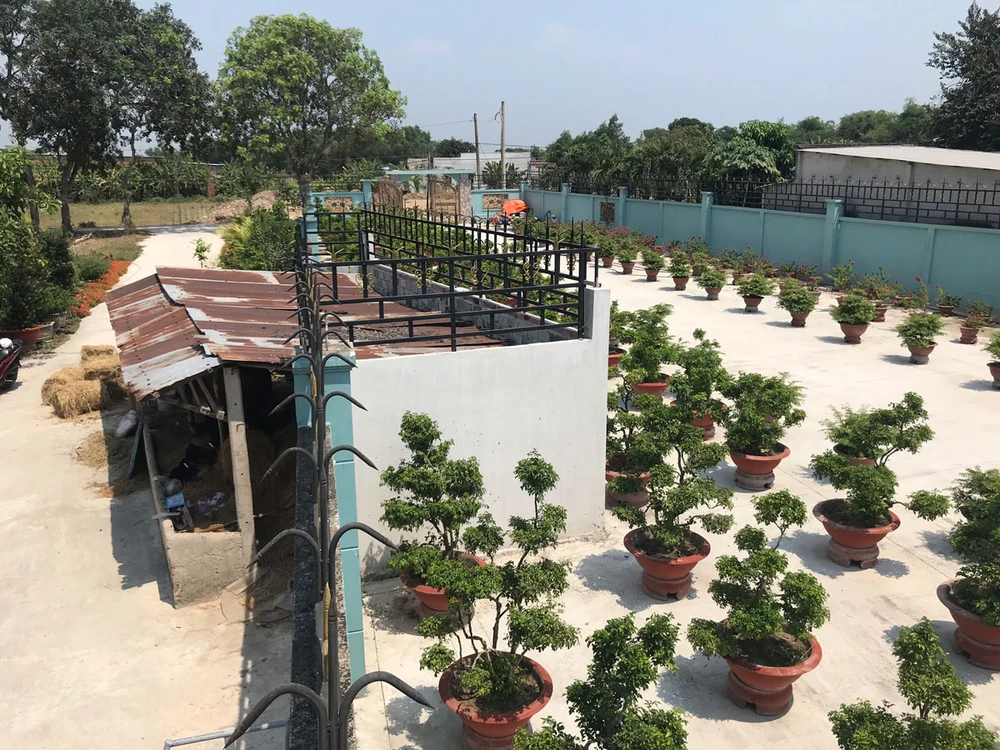 Chuồng bò của gia đình bà Quí hiện nằm giữa tường rào bao quanh mảnh đất. Ảnh: YC