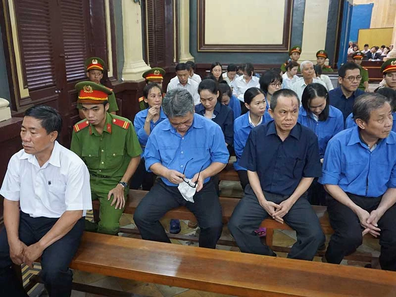 Các bị cáo tại phiên tòa. Ảnh: NGÂN NGA