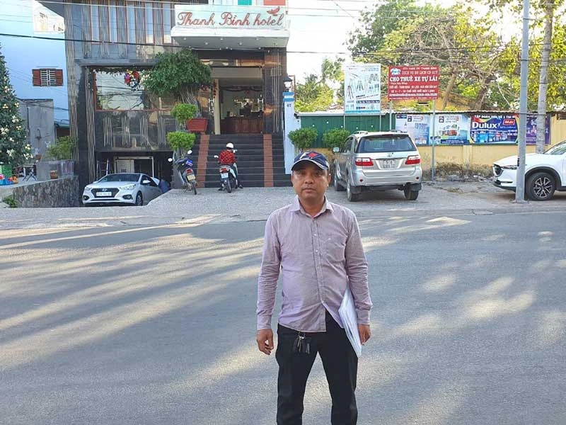 Bị cáo Đức trước khách sạn nơi xảy ra sự việc. Ảnh: CTV