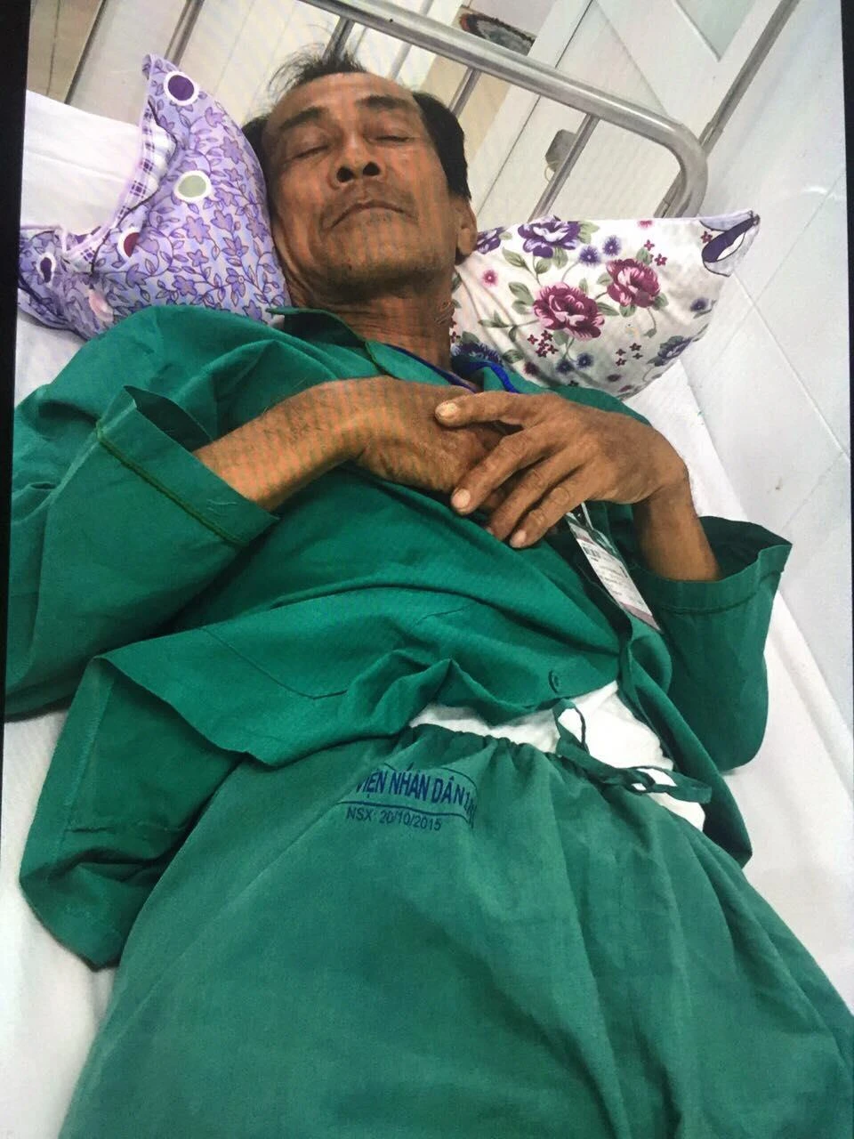 Ông Nguyễn Văn Lài hiện đang nằm viện điều trị tại Bệnh viện 115. Ảnh do gia đình cung cấp.