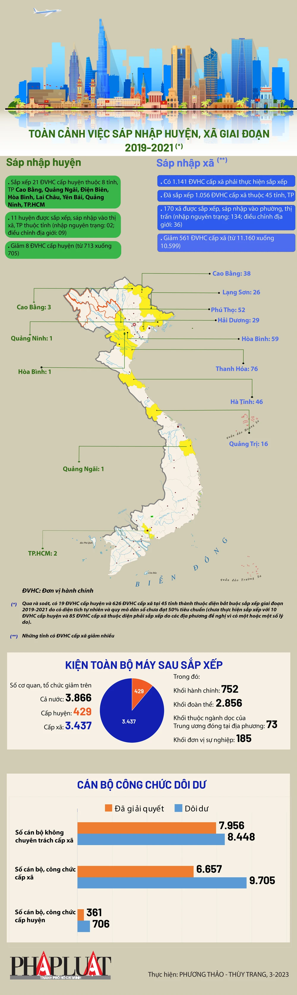 (PLO)- Trong giai đoạn 2019-2021, cả nước đã giảm 8 đơn vị hành chính cấp huyện, 561 đơn vị hành chính cấp xã; cả nước cũng đã giảm 3.866 cơ quan, tổ chức.