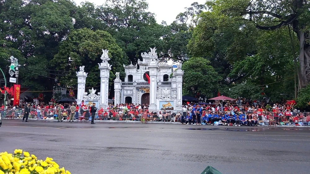 Tại khu vực sân vận động Quốc gia Mỹ Đình (Hà Nội), người dân và du khách đổ về mỗi lúc một đông hơn để chiêm ngưỡng dàn pháo lễ và chờ pháo khai hỏa. Một số người cho biết họ đến từ những tỉnh thành xa như Thanh Hóa, Nghệ An và các tỉnh miền Nam. Nhiều người đã đội mưa chờ đợi từ đêm hôm qua để tận mắt chứng kiến dàn pháo khai hỏa. Người dân cùng hô vang và cất cao tiếng hát "như có Bác Hồ trong ngày vui đại thắng...".
