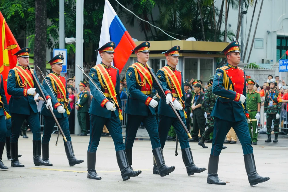 Tại buổi tổng duyệt còn có khối quân đội các nước như Nga, Lào, Campuchia cùng tham gia.