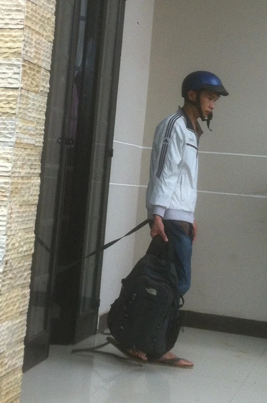 Tiến diễn lại hành vi dắt xe rời khỏi hiện trường sau khi gây án.