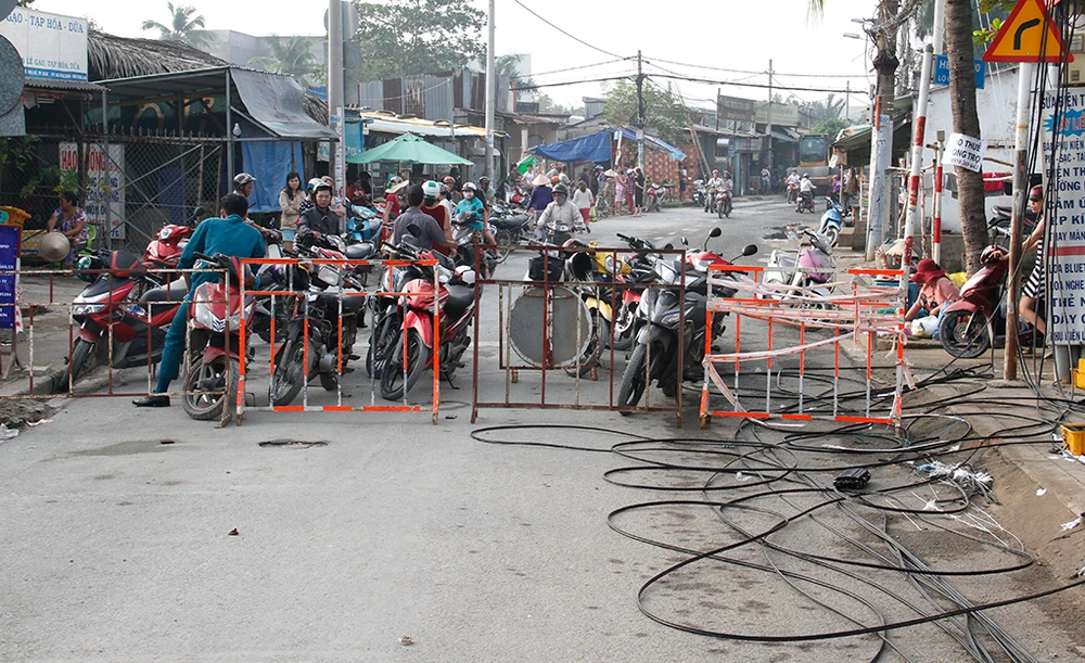 Đến đầu giờ chiều cùng ngày, công tác phong tỏa, khắc phục sự cố vẫn đang được triển khai.