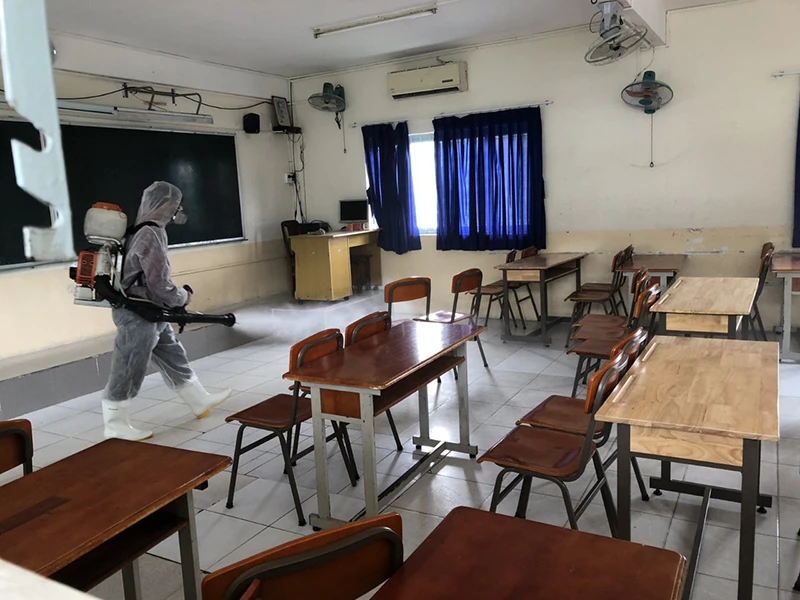 Tới thời điểm này, các trường đều đang gấp rút triển khai các biện pháp phòng tránh dịch cho kỳ thi. Ông Phạm Phương Bình, Phó Hiệu trưởng Trường THPT Nguyễn Hữu Huân, quận Thủ Đức, cho biết trường sẽ được khử khuẩn vào hôm nay. Hiện nhà trường đã cho vệ sinh phòng học, chuẩn bị cơ sở vật chất theo quy định, tăng cường thêm an ninh.