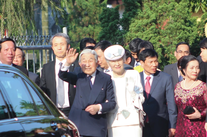 Sáng 5-3, nhà vua Nhật Bản Akihito và hoàng hậu Michiko rời Huế, kết thúc chuyến thăm cấp nhà nước đến Việt Nam. Tại cuộc họp báo tối 4-3, ông Hatsuhisa Takashima, người phát ngôn của Nhật hoàng Akihito, cho biết ấn tượng nhất đối với nhà vua và hoàng hậu đó là sự chào đón rất nồng nhiệt, trọng thị của chính quyền, của người dân TP Huế đã dành cho phái đoàn trong hai ngày qua.
