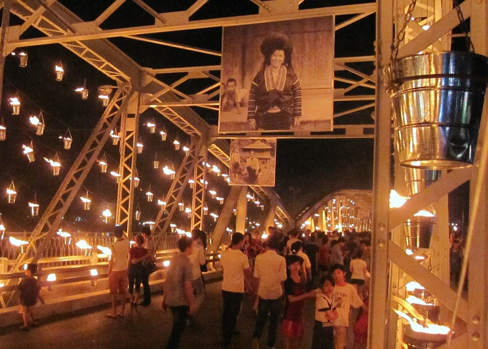Cầu Trường Tiền lung linh với chương trình nghệ thuật sắp đặt lửa của đoàn nghệ thuật Carabosse Pháp.