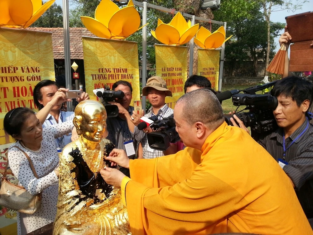 Lễ thếp vàng cho tượng Phật hoàng Trần Nhân Tông.