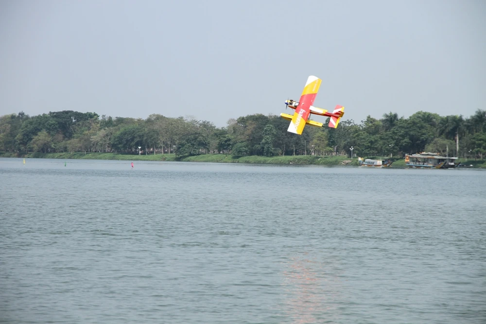 : Trò chơi mô hình giữa sông Hương cũng thu hút được khá đông người xem.