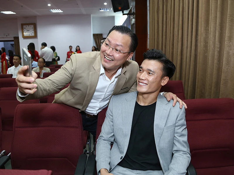 Hai nhân vật họ Mai rất hợp “cạ” với nhau, Phó Giám đốc Sở Văn hóa và Thể thao TP.HCM Mai Bá Hùng và HLV Mai Đức Chung, người vinh dự nhận danh hiệu Vinh danh Fair Play.