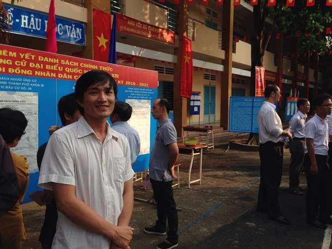 Anh Tuyền có mặt từ sáng sớm tại khu vực bầu cử để điểm lại các đại biểu mình gửi gắm lần cuối. Ảnh: P.ĐIỀN