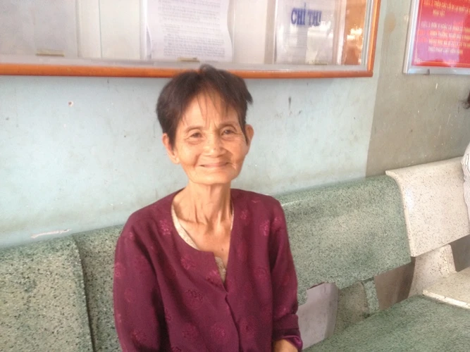 Bà Trần Thị Mẹo, 80 tuổi dù chân đi khập khiễng đi từng bước khó khăn nhưng bà vẫn đến điểm bầu khá sớm.