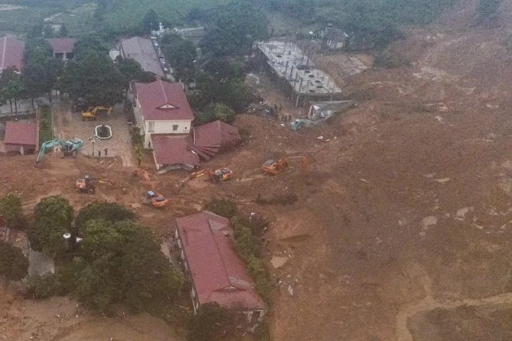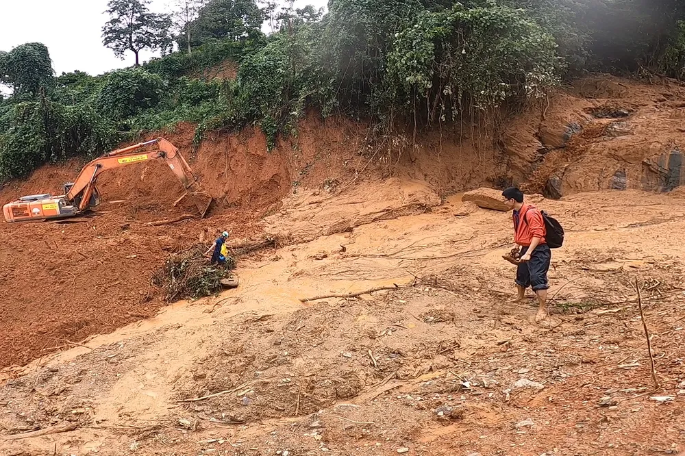 Khu vực sạt lở đầy bùn đất, lực lượng chức năng vẫn đang khẩn trương tìm kiếm. Ảnh: NGUYỄN DO