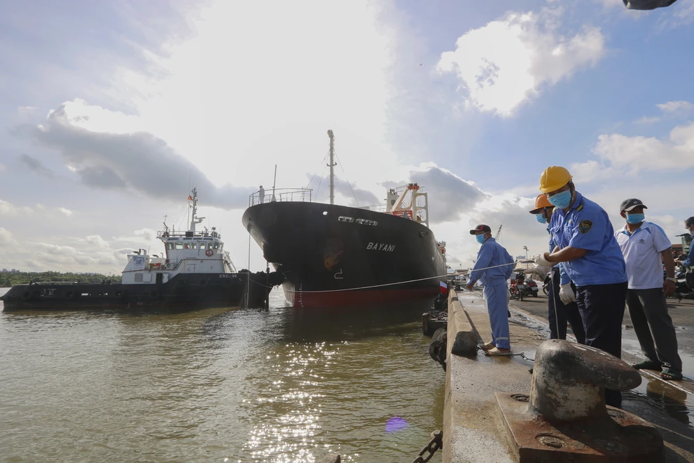 Tàu chở metro số 1 bắt đầu cập cảng Khánh Hội.