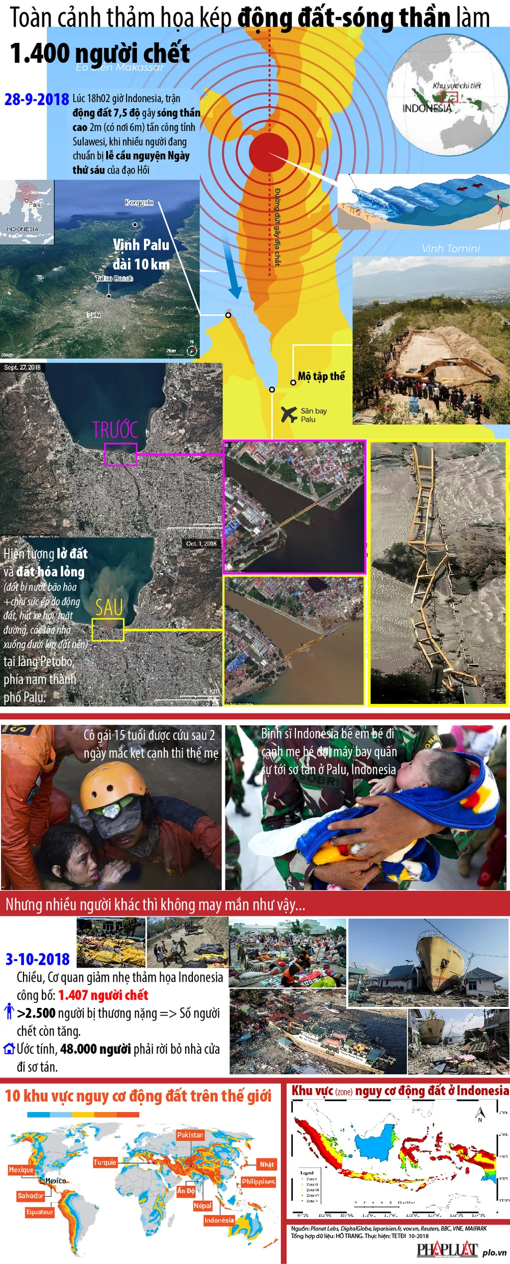 Toàn cảnh thảm họa kép hơn 1.400 người chết ở Indonesia